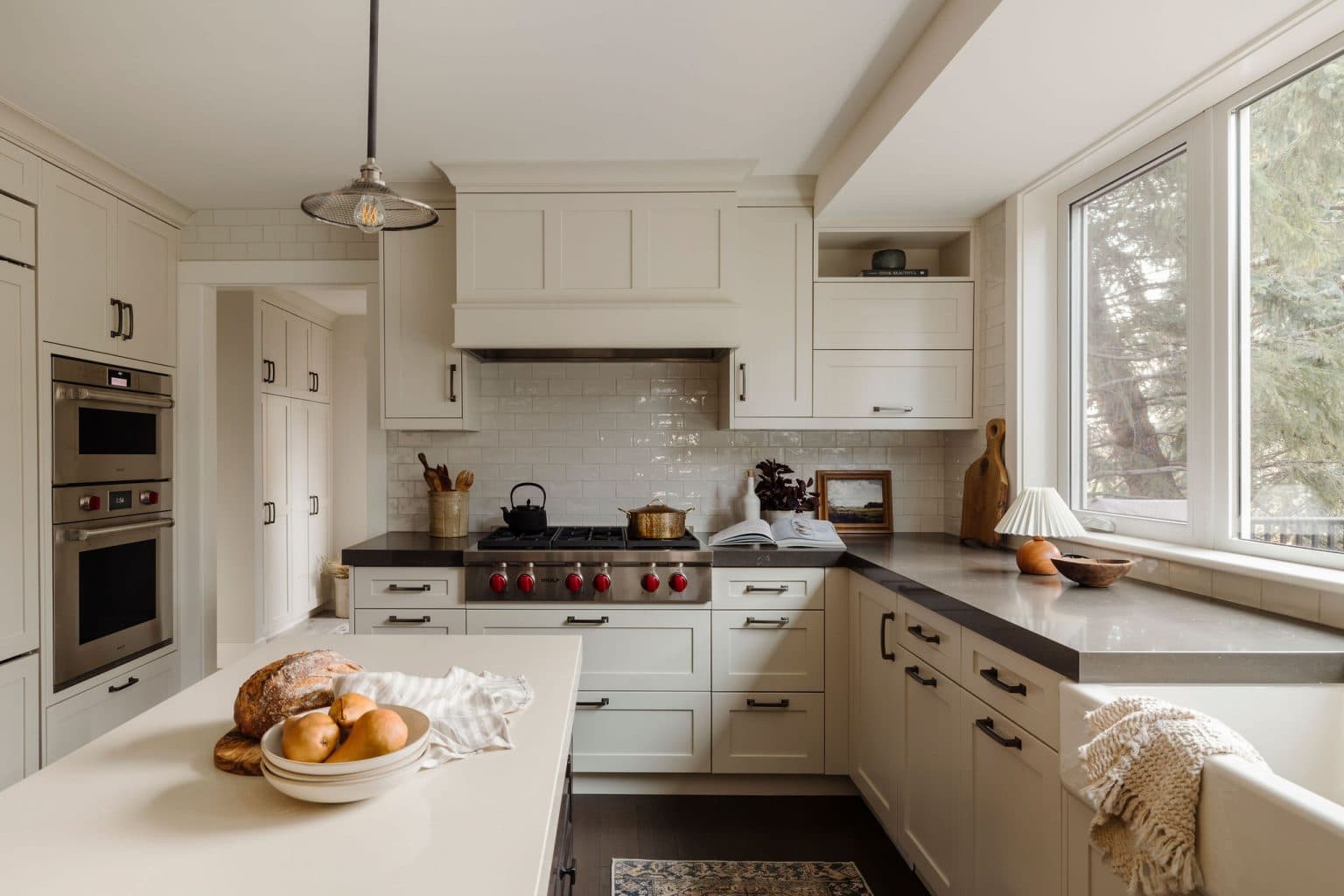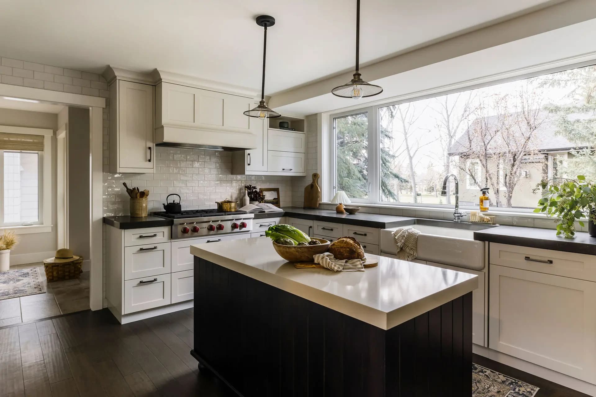The scope of work included a full-scale renovation from framing stage working within the existing building envelope. Our team identified and resolved deficient structural issues from the original build and modernized the home with today’s building code. We then worked along side the homeowners to finish their family home with a new color scheme and updated details and materials to integrate with preserved features such as the stone fireplace. In addition, we created a brand-new mudroom complete with a dog wash.
